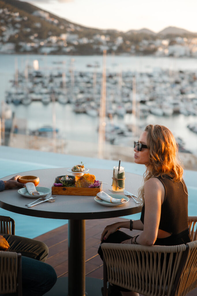 Uno de los momentos más mágicos en Aguas de Ibiza Grand Luxe Hotel es cuando cae el sol durante el atardecer. Contempla la hora dorada desde nuestra azotea panorámica con vistas al Mar Mediterráneo mientras pruebas alguno de nuestros exóticos y exquisitos cócteles en Maymanta Pisco Bar con ADN peruano.