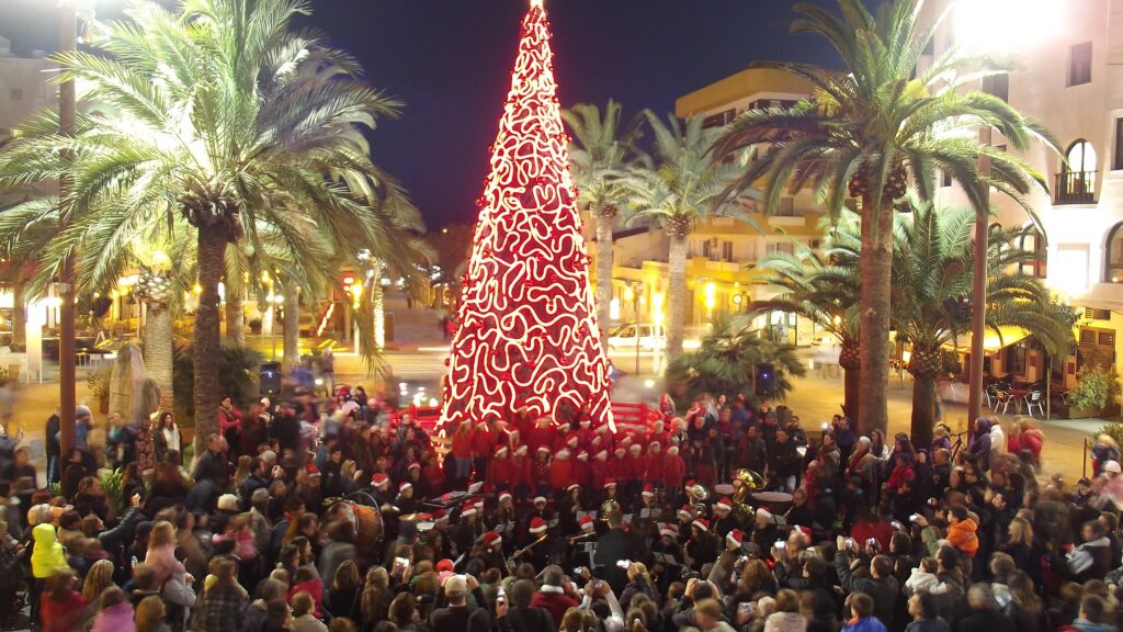 Déjate llevar por las luces brillantes y las coloridas decoraciones navideñas que adornan las calles y plazas de Ibiza. Pasea por el centro histórico de la ciudad y maravíllate con los impresionantes árboles de Navidad y las decoraciones festivas que iluminan la noche.