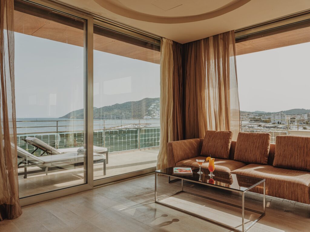 Adéntrate en el esplendor de nuestras suites exclusivas, un verdadero santuario de lujo y comodidad en Aguas de Ibiza Grand Luxe Hotel. Hoy hablaremos exclusivamente de la Cloud 9 Corner Suite, con un generoso espacio de 87 a 104m2, incluyendo una encantadora terraza privada con vistas panorámicas, han sido meticulosamente diseñadas para ofrecer una experiencia única que redefine el concepto de indulgencia.
