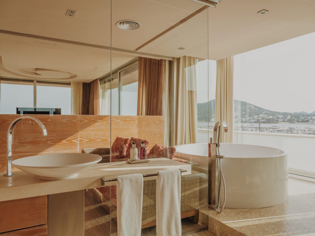Ubicada estratégicamente en la planta VIP, esta Suite Exclusiva te ofrece un nivel de privacidad excepcional y servicios personalizados. Experimenta la grandeza de Aguas de Ibiza Grand Luxe Hotel a través de estas suites, que han sido diseñadas para superar tus expectativas y crear recuerdos inolvidables en la isla blanca. Sumérgete en el lujo sin límites de nuestras suites exclusivas y descubre un mundo donde cada detalle se fusiona para ofrecer una experiencia única e inolvidable.